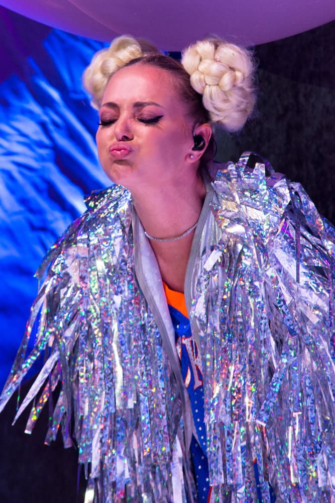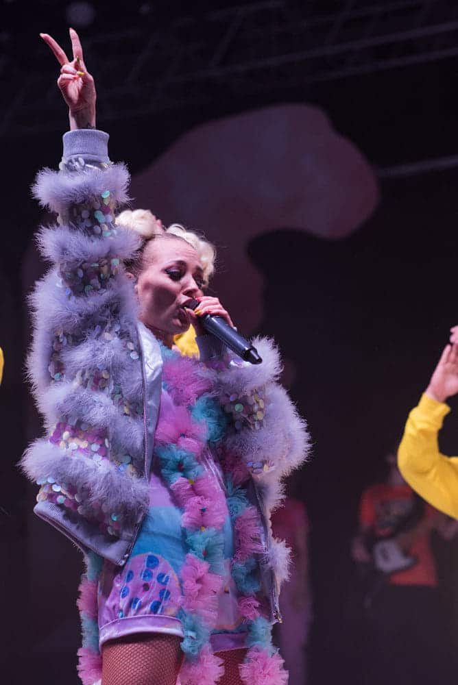 Pe toată scena era distribuită recuzită în formă de acadele, macarons, înghețată, frișcă, totul foarte colorat și țipător, potrivit temei concertului. Poate unele persoane au fost de părere că showul a fost un pic kitschos dar mie mi s-a părut că s-a încadrat perfect în temă. Recuzita, în combinație cu tunurile de aer și jocurile de lumini, să nu mai zic vocea Deliei, au făcut din concert unul aparte, așa cum eu nu am mai întâlnit până acum la un artist din România. Deci, pe scurt, mi-a plăcut și m-aș mai duce o dată dacă aș mai avea ocazia!