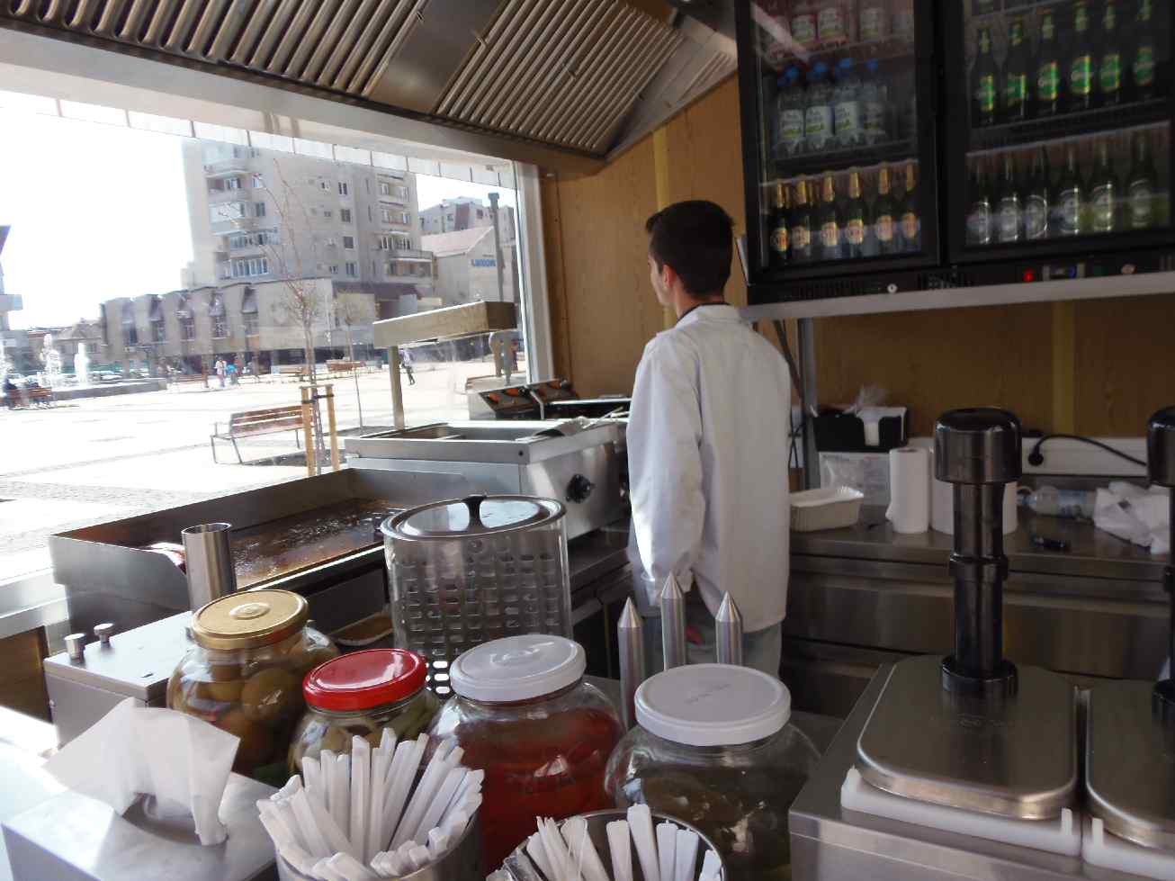 Ca idee e foarte bună, genială chiar. Seamănă cu ce am văzut prin Germania… ca implementare e un mare rahat. În primul rând acolo lucrau când am fost eu 2 plictisiţi. A durat să mă serveasca aproximativ 15 minute pentru că ….(fără alt motiv). Unul din ei dormea efectiv… şi s-a trezit când m-a auzit că făceam poze. Ca preţ, să zicem că e ok e preţ normal pentru centru şi porţia e bună dar la ce mod de prezentare au… nu cred ca există mulţi oameni dispuşi să mănânce. În plus dacă ar plăti chirie şi personal din buzunarul propriu plus cheltuieli vă garantez că nu ar putea avea acele preţuri… sunt prea mici pentru centru.