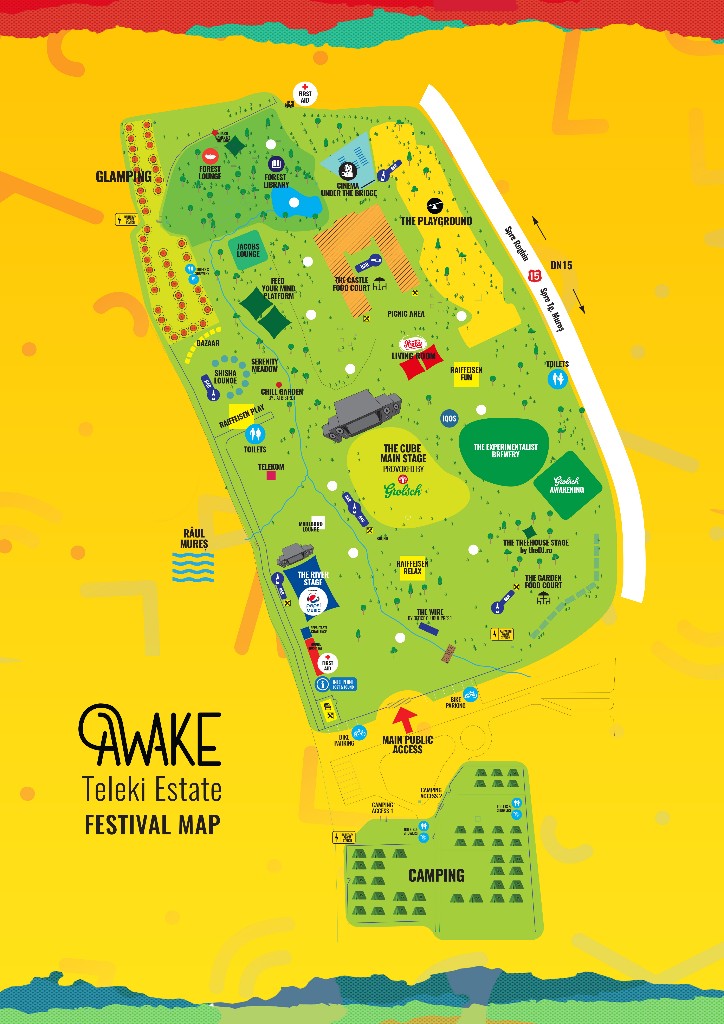 Parcul ce inconjoara castelul Teleki devine gazda perfecta pentru una dintre cele mai frumoase experiente de festival pregatite in ultimii ani, la Targu Mures. AWAKE promite ca pe langa seria concertelor programate pe cele doua scene principale, The CUBE Main Stage provoked by Grolsch si The RIVER Stage powered by Pepsi, numeroase alte activitati vor impanzi domeniul Teleki, oferind celor prezenti optiuni pentru toate gusturile:
