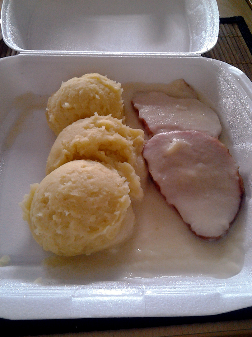 Despre Pescarus am scris numai bune asa ca am comandat meniul zilei fara ezitare. Supa a fost destul de buna desi a fost o combinatie dintre ciorba si supa dulce. La felul doi am primit niste muschiuleti cu sos de hrean care a fost oarecum ok.