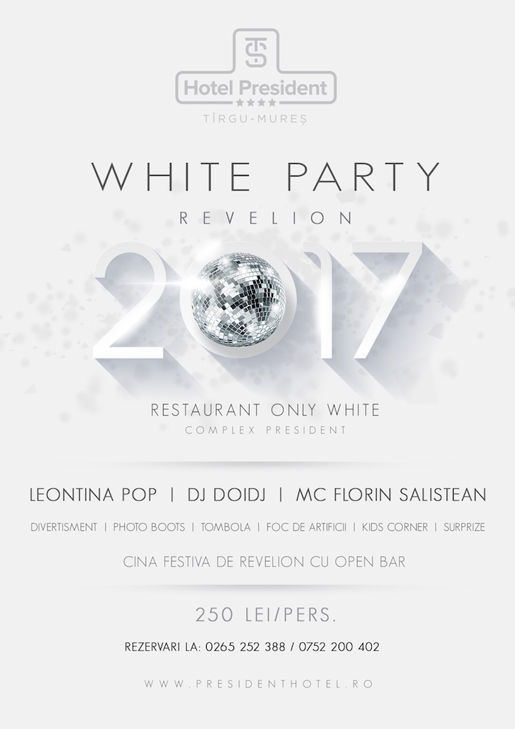 Cea mai selectă șampanie, muzică live și Dj, un meniu special conceput, open bar și foc de artificii la miezul nopții și spirit de sărbătoare! Un Revelion 2017 deosebit la prețul de 78 euro/persoană! Aici găsiți detaliile necesare rezervării!