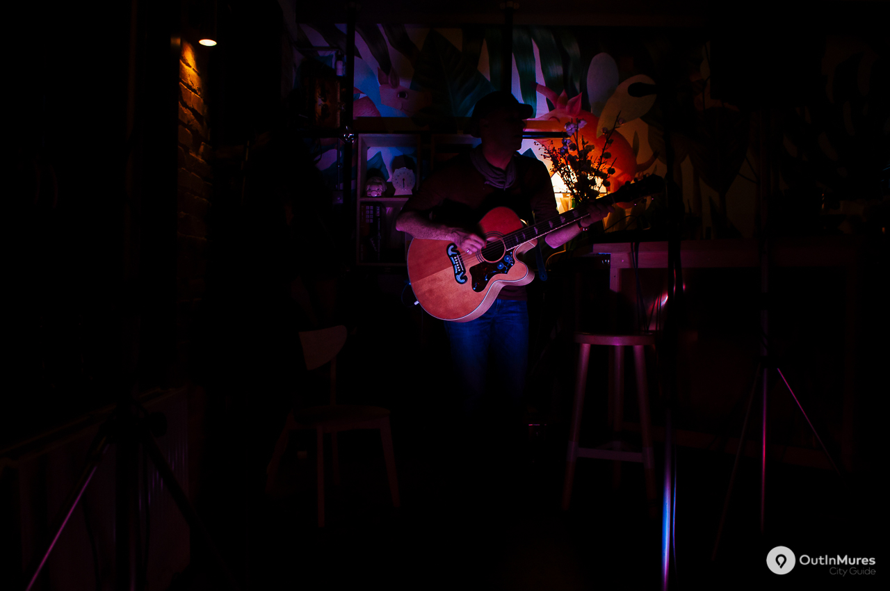 Lumea a început să se strângă în jurul orei 21:10, iar toată treaba a început pe la 21:30. Atmosfera plăcută și relaxată, marca J’ai Bistrot, a fost înlocuită de una alertă, aproape tensionată, până la trecerea la una ușor amuzantă, la auzul unui “No Serustoc”. Lumea s-a destins și mai mult la auzul primului acord. Așadar, să înceapă concertul. 😀