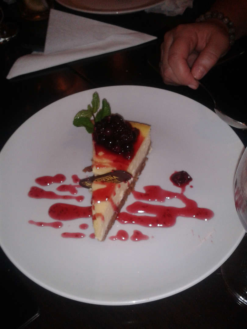 Din păcate nu am apucat să fac poze localului, dar le găsiţi aici pe pagina lor. În continuare vă prezint felurile comandate de noi şi vă declar onest că şi acum îmi plouă în gură când văd cheesecake-ul acesta.