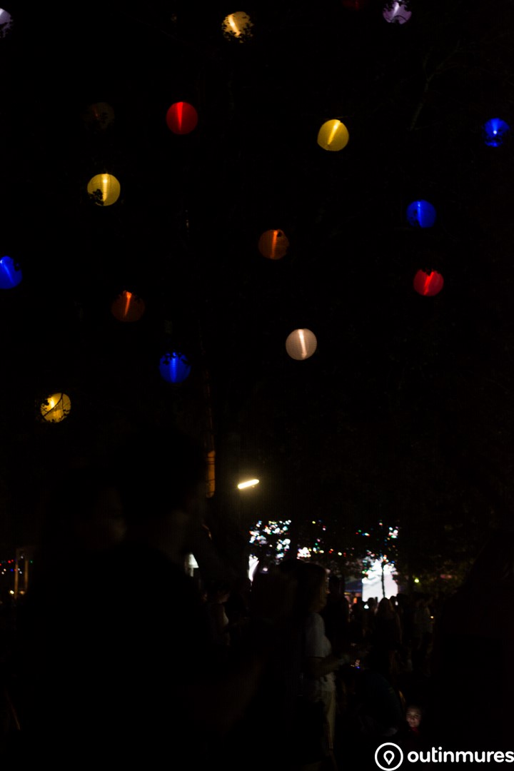 Când credeam și noi că ne mai obișnuim cu spațiul festivalului, a venit seara, și seara a adus cu ea o explozie de culoare și luminițe: copaci ticsiți cu milioane de luminițe aurii, lampioane multicolore și câte și mai câte. Imaginile vorbesc de la sine.