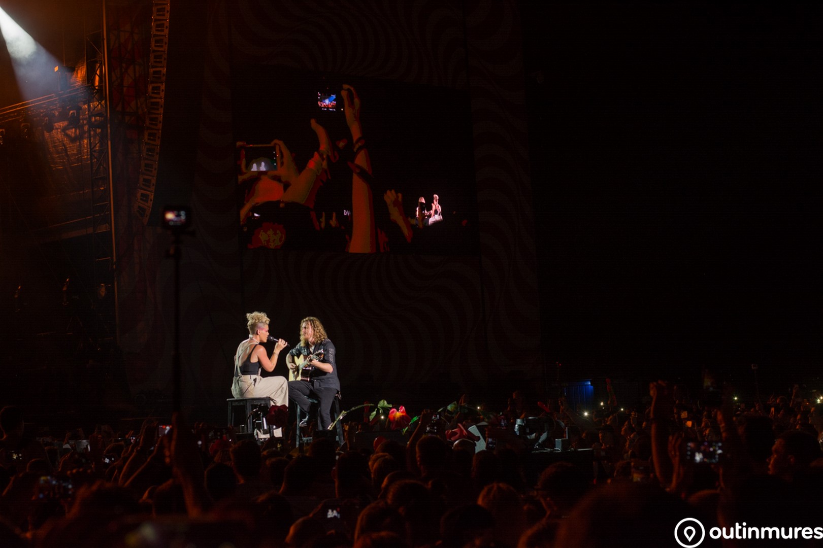 Spațiul uriaș din fața scenei Dan Panaitescu era deja arhiplin cu jumătate de oră înaintea de ora începerii concertului superstarului P!NK. Ne-am croit spațiu cum am putut noi mai bine înspre fața scenei, dar ne-am oprit undeva la mijlocul distanței, pentru că pur și simplu nu se mai putea înainta.