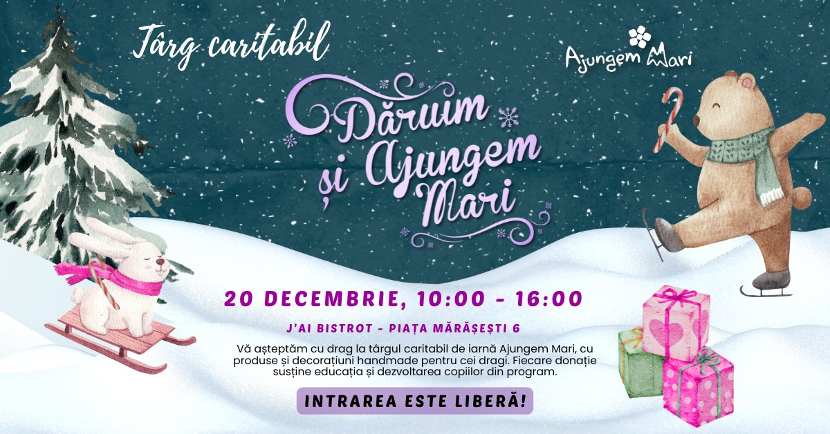 Spiridușii Ajungem MARI revin cu o vestea bună! Se pregătesc de o nouă ediție a Târgului caritabil de iarnă ”Dăruim și Ajungem MARI”, locul unde magia sărbătorilor se împletește cu puterea binelui.